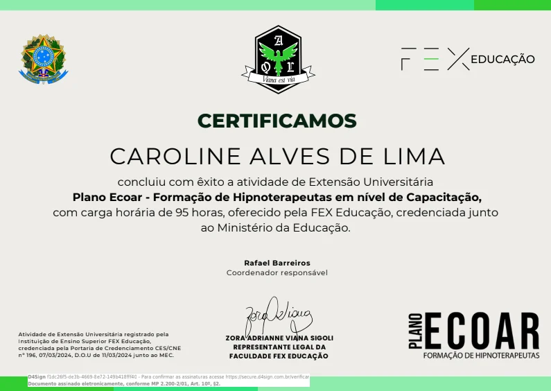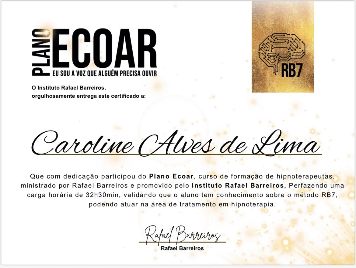 Investimos continuamente em conhecimento para oferecer o melhor suporte terapêutico. Possuímos formação no método de Atualização de Memórias pelo renomado Instituto Rafael Barreiros, aliando técnica comprovada e experiência para auxiliar na sua jornada de bem-estar.